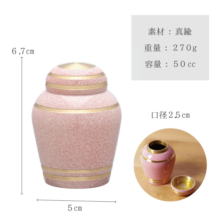 故人とずっと一緒にいたい、でも遺骨をばらばらにしてしまうのは良いことなのか、供養にならないのではないか?と不安に思われる方もいらっしゃるかもしれませんね。 仏教の考えでは、分骨は決して間違ったことではありません。 お釈迦様が亡くなったとき、8人の弟子に分骨をし、この8つに分けた骨が、やがて八大霊塔に祀られ、これが寺院の起源になったと伝えられています。 また、地域によっては分骨が習慣化されているところもあります。 一番大切なのは、故人を想うお気持ちだと思います。カプセルに納めて持ち歩いたり、小さな骨壷に納めてお部屋で一緒にすごすのも良いでしょう。 すでに納骨を済ませてしまった方も、ご遺骨を取り出すことはおおむね可能です。納骨を行ったお寺や霊園、石材店様に確認なさってください。 ●ご遺骨の納め方 こちらでご案内しているミニ骨壷は、ご遺骨のほか、遺髪や小さな思い出の品をお納めいただけます。 ご遺骨をお納めいただく場合に、適切な大きさのお骨が無い場合には、ティッシュや紙に包み、優しく手で押し、小さくしてお納めください。 また、ドライバーなどの特別な道具は必要ありません。ミニ骨壷の中に遺品を詰め、しっかりと蓋を閉めてください。 いずれのミニ骨壷も完全防水ではございませんので、水気のある場所でのご使用はお避け下さいませ。 |