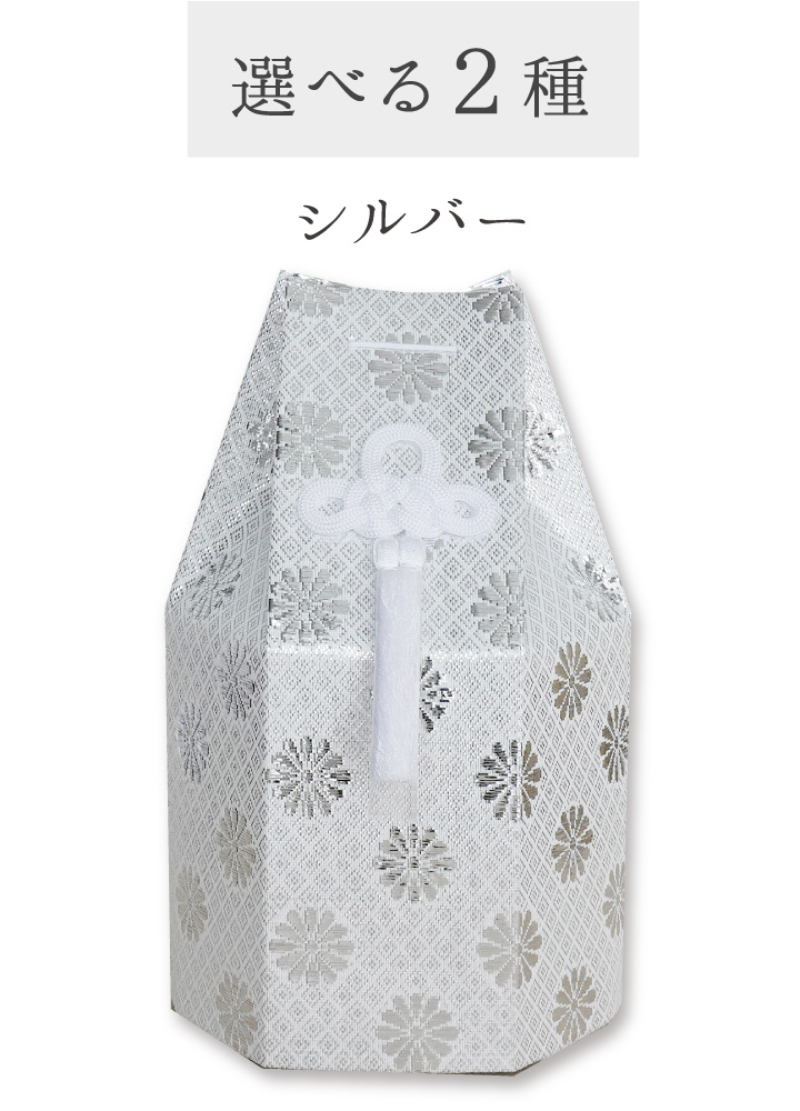 さりげなくきらめく菊模様が印象的な、国産の骨壷カバーのセットです。