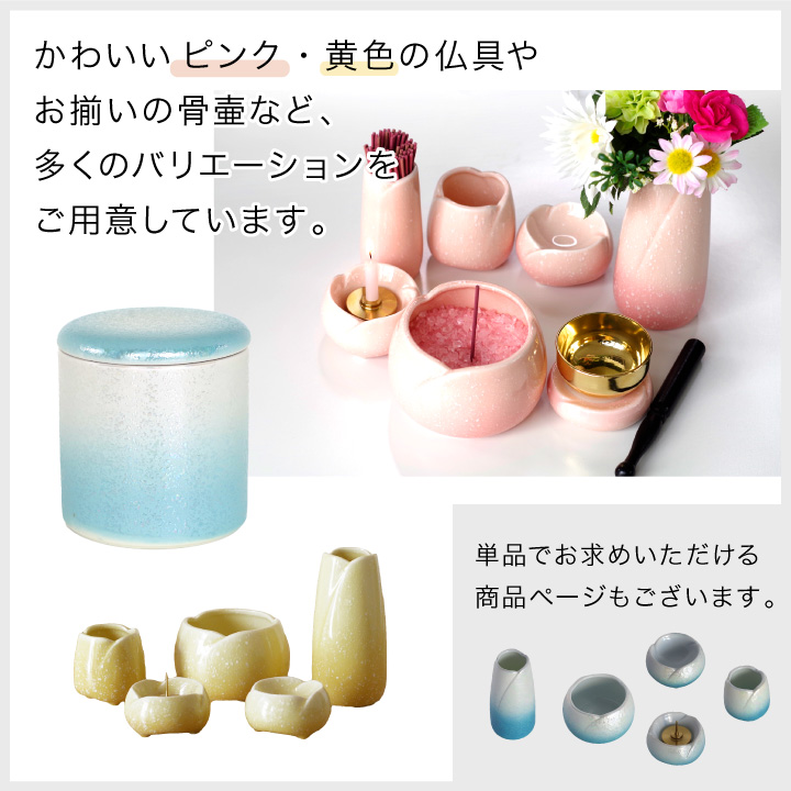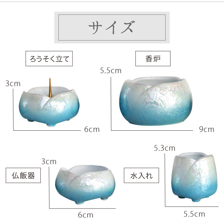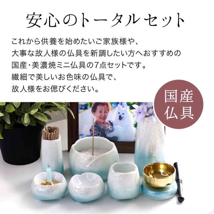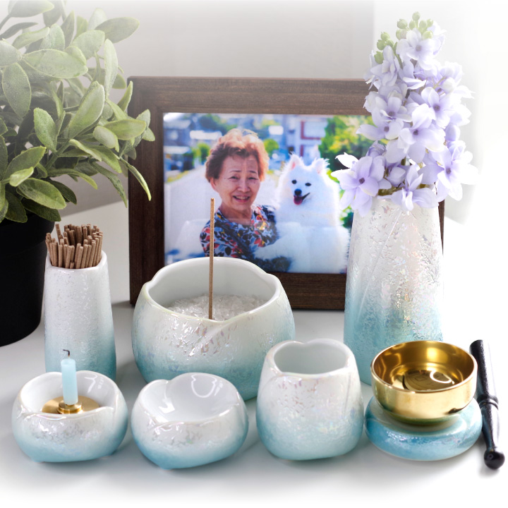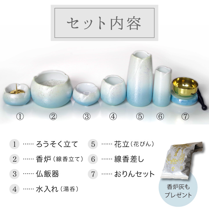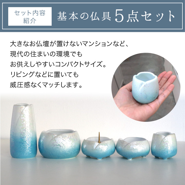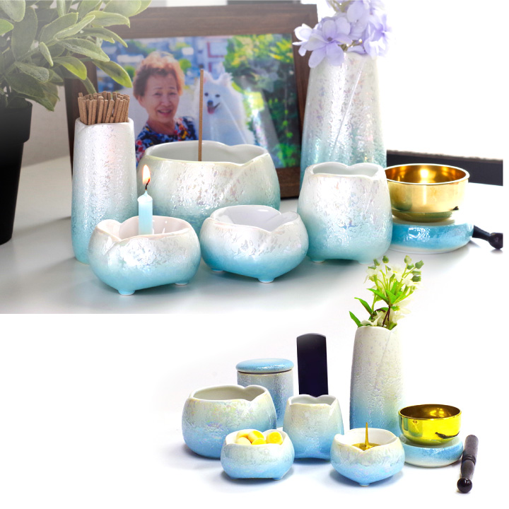 美濃焼仏具7点セット やわらぎ ラスターブルー