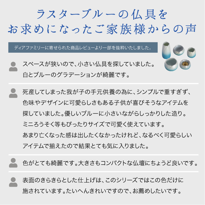 関連ワード:手元供養 終活 エンディングノート 現代仏具 赤ちゃん 水子 水子供養 子供 仏具セット 仏具 陶器仏具 グラデ おしゃれ 可愛い かわいい 供養 香炉 線香立て ロウソク立て 水入れ 供物台 終活 水子供養 お悔やみ ミニ 小さい コンパクト 青 白 ホワイト 女性 男性 マンション アパート リビング 安心 初めて 供養セット
