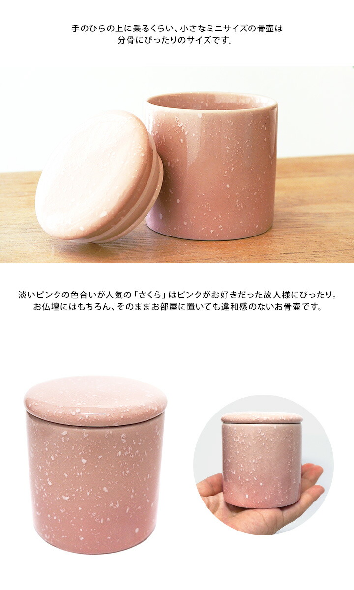 TOP 骨壷色から探す赤・ピンク系 骨壷素材から探す陶器製 国産 やわらぎ骨壷 桜 2寸 ピンク シリコン付き 安全骨壷 ミニ骨壷 分骨 遺骨 骨 仏具 パッキン シリコン 供養 手元供養 お悔やみ 骨入れ やわらぎ さくら 陶器 小さい 可愛い おしゃれ 安心 終活 ケース 入れ物 ミニ 喉仏 天使ママ 桜特集 価格: ¥3,300 (税込) [ポイント還元 33ポイント〜] 販売期間: 22: 5: 数量: 個 在庫: 在庫あり 在庫 在庫あり 返品についての詳細はこちら サイズ ■2寸 (内寸)直径5.7cm×深さ5.4cm (外寸)6.3cm×高さ6.7cm 色 さくら(淡いピンク色です) 素材 陶器、シリコン 備考 ※撮影に使用している仏具や小物は付属しません。お骨壷のみのお届けです。■日本製(岐阜県) ⇒骨壷一覧はこちら ⇒仏具一覧はこちら