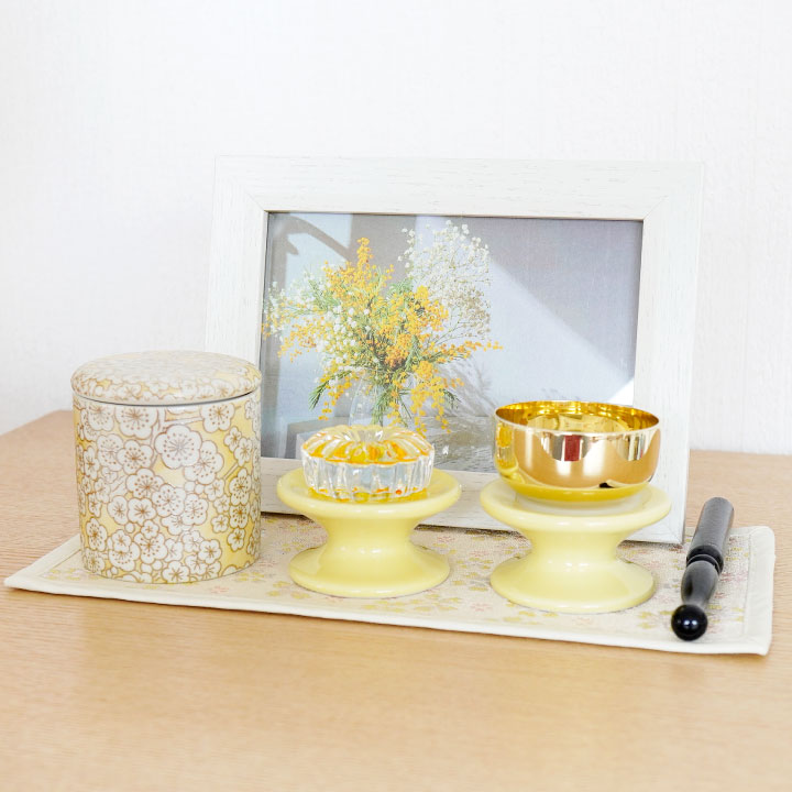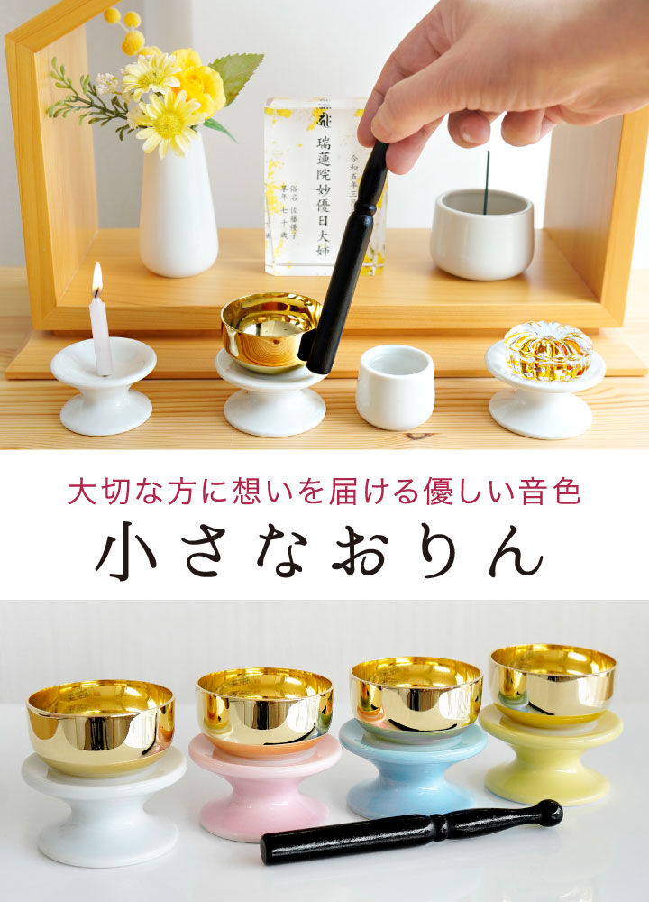 仏具セットにも合わせやすい、おりん台が陶器でできたミニおりんセットです。