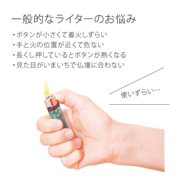 ライターを使い慣れていない方や、使うのが苦手な方でも安心してお使いいただけます。
