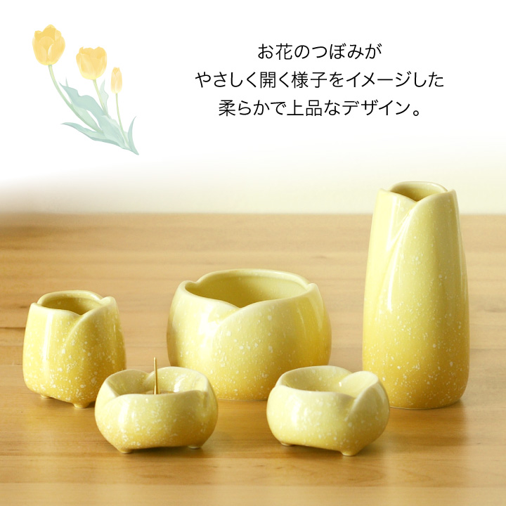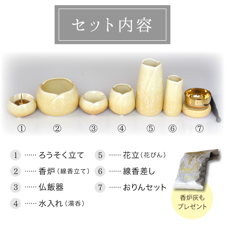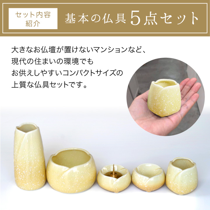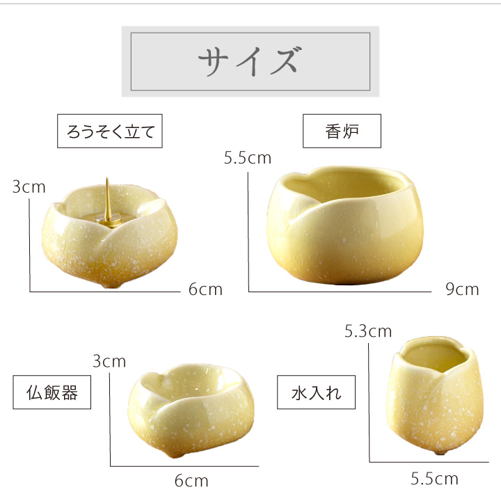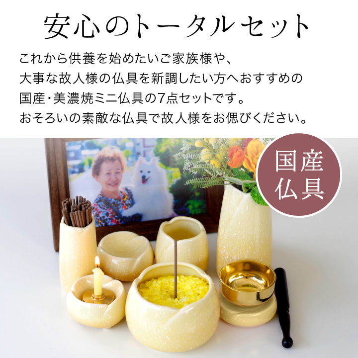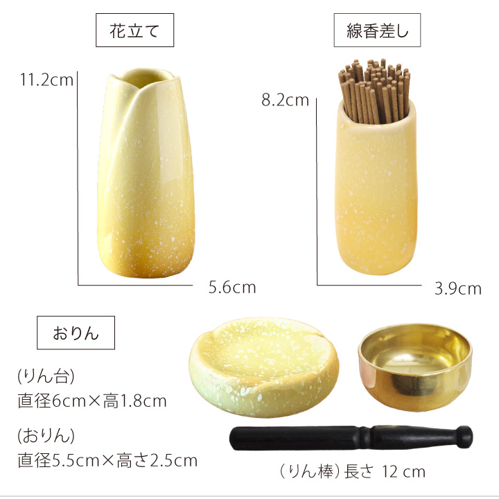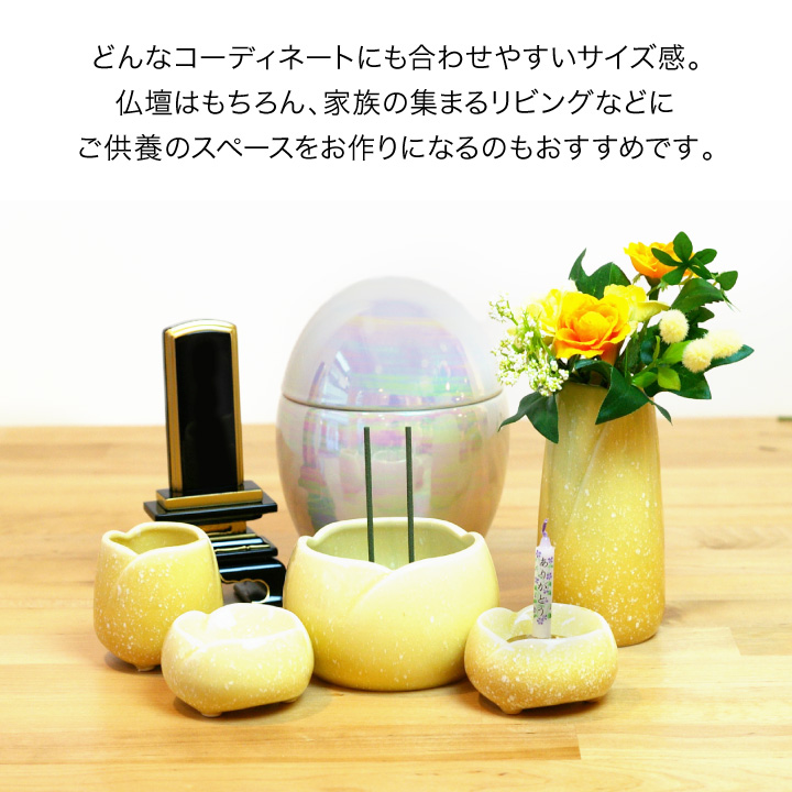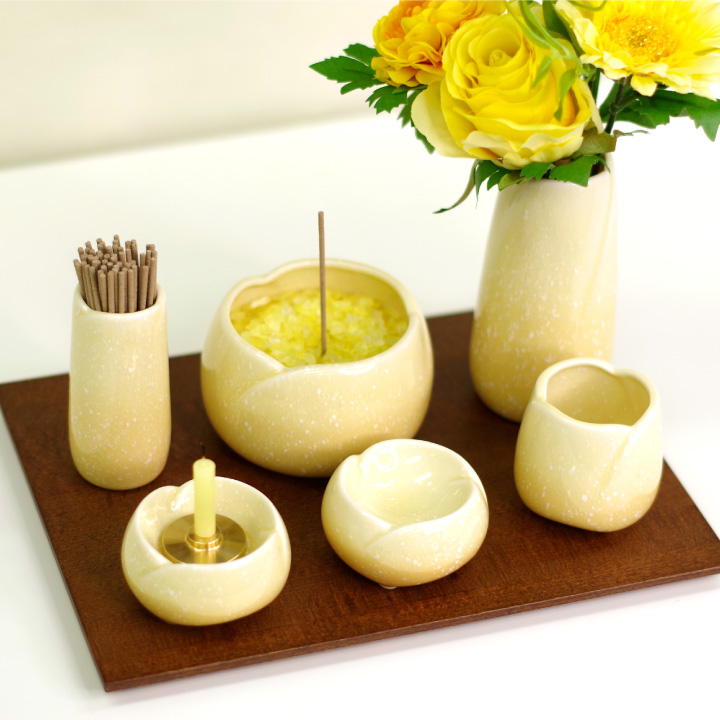 美濃焼仏具7点セット やわらぎ ゆず(黄色)