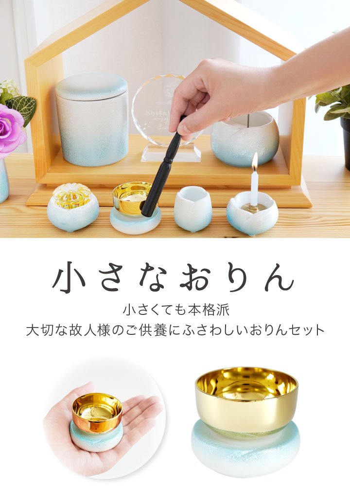 おりんがあれば、お写真と一緒に飾るだけでも手を合わせる場が出来あがりますよ。