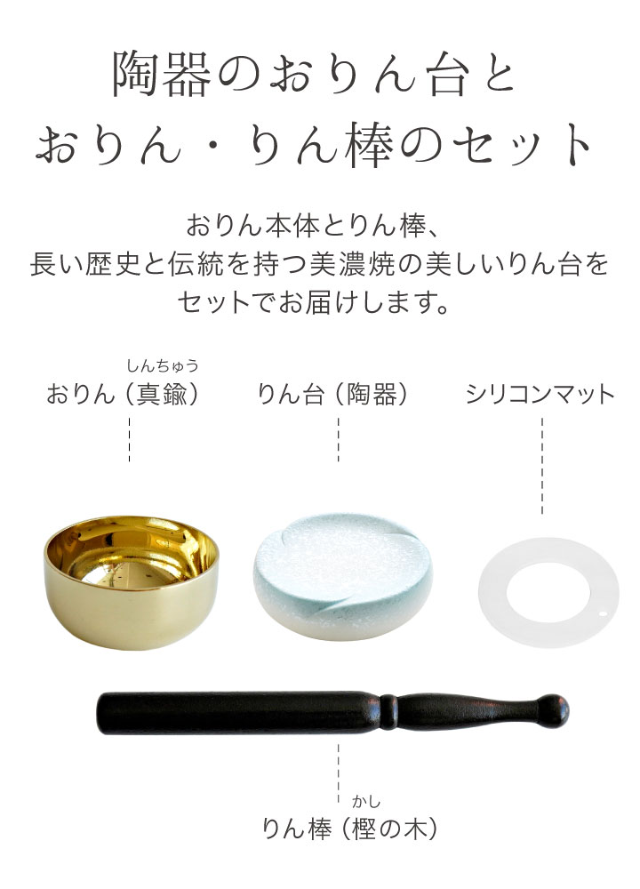 (りん)真鍮 (りん台)陶器 (りん棒)樫(木) |