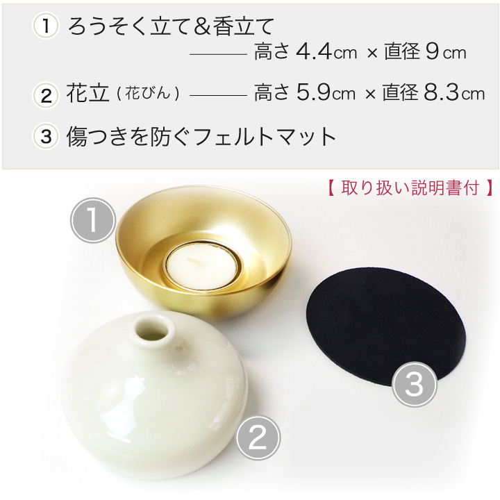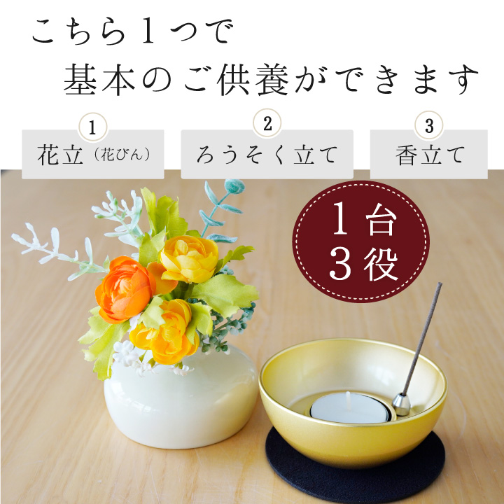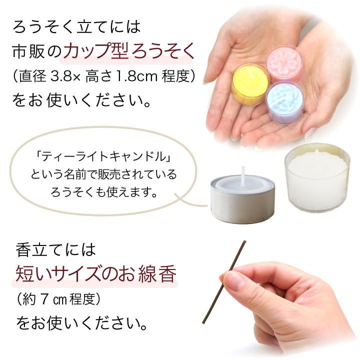 上の部分は花立、下の部分は、ろうそく立て(キャンドル)と、お線香立てになっています。