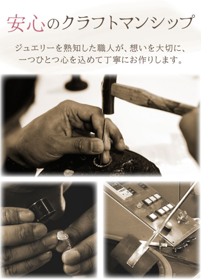 国内のジュエリー職人たちが、1点1点丁寧にお作りいたします。