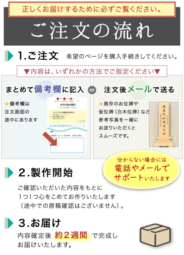 四十九日までに正式な位牌(本位牌)を作るのが一般的です。