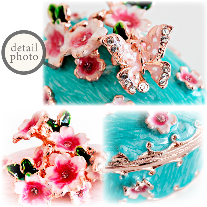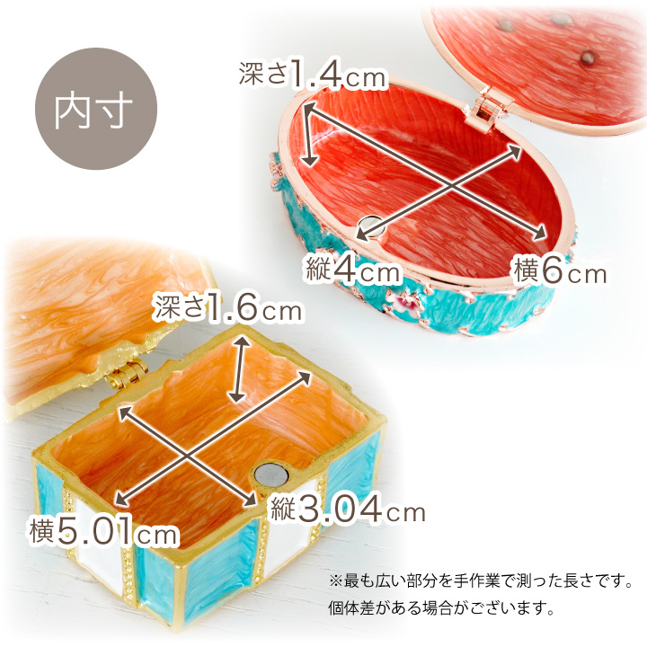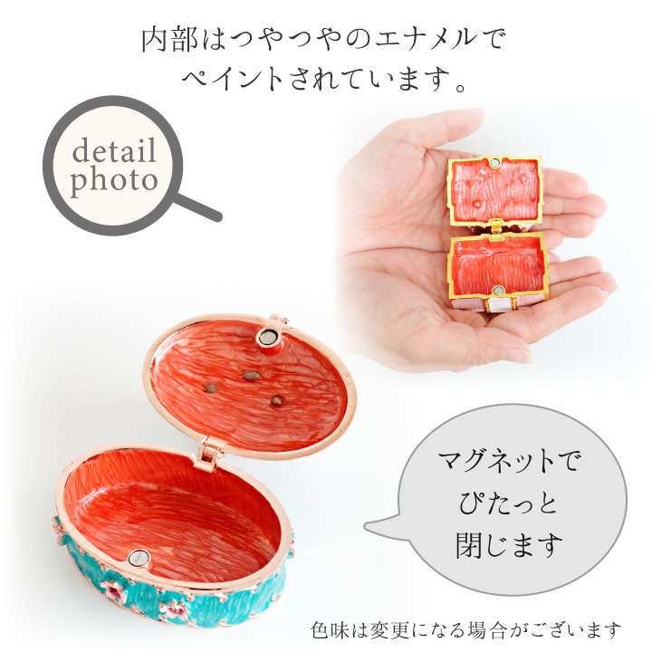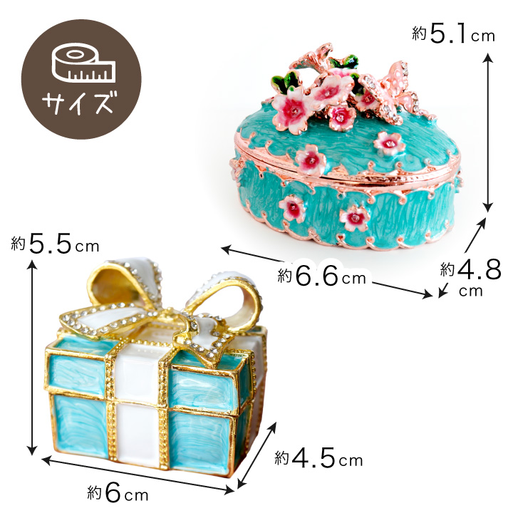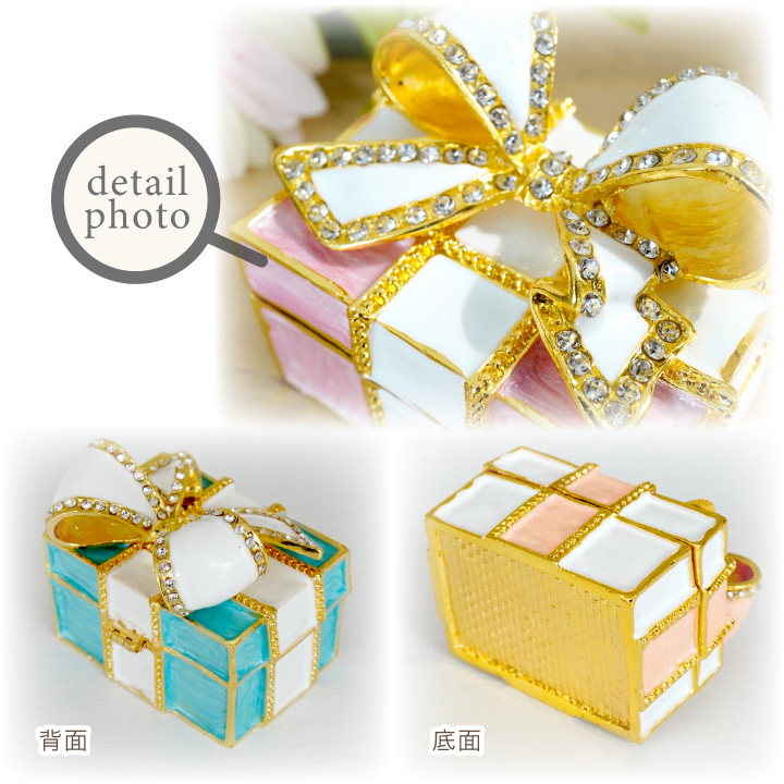きらきらのラインストーンやお花のモチーフをあしらったボックスは
