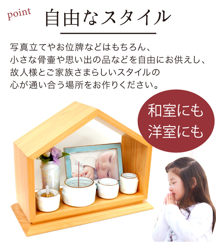 個性的なおうち型のステージ型仏壇は、シンプルでありながらも