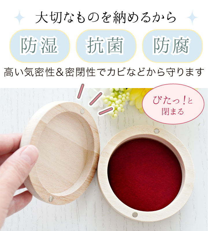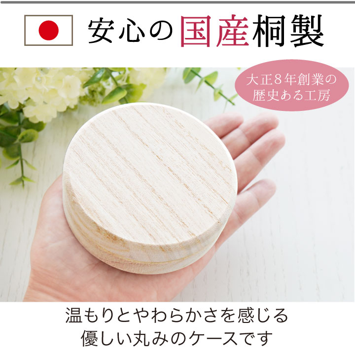 天然の桐(きり)材で作られているこちらのケースは通気性がよく、防カビ・防虫効果もあるので、大事な遺品を長期間しっかりと保管してくれます。