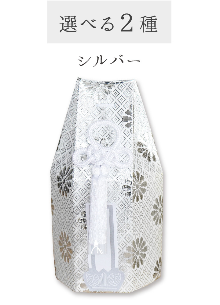 さりげなくきらめく菊模様が印象的な、国産の骨壷カバーのセットです。