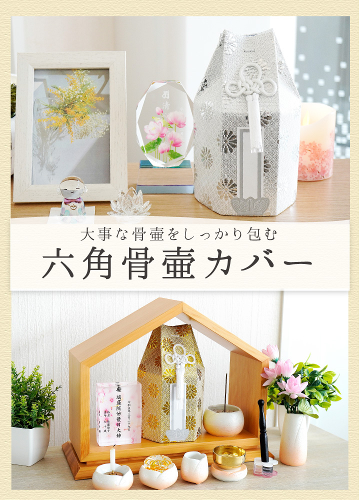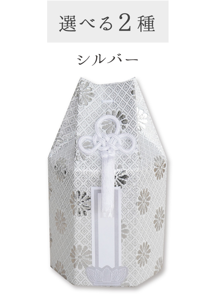 さりげなくきらめく菊模様が印象的な、国産の骨壷カバーのセットです。