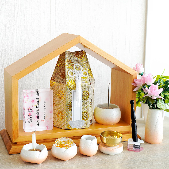 ・仏具セット「やわらぎの花ミニ ラスターオレンジ」