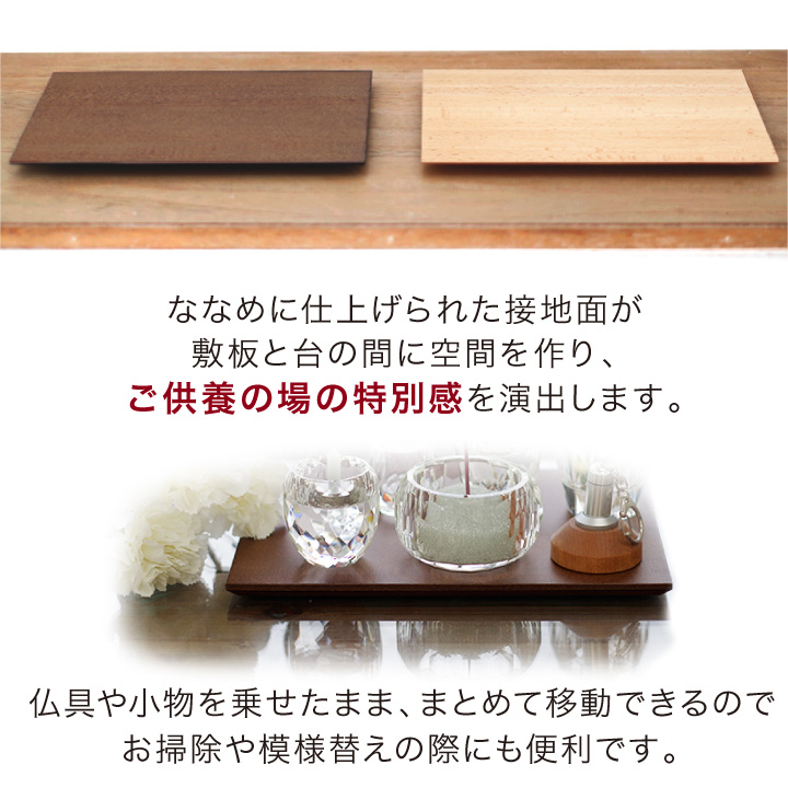 国産木でお作りした、仏具やお位牌を飾るための敷板です。