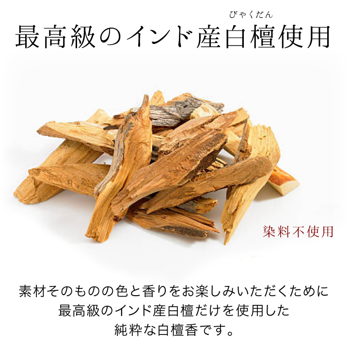 最高級のインド産白檀だけを使用した、100%純粋な白檀のお線香です。