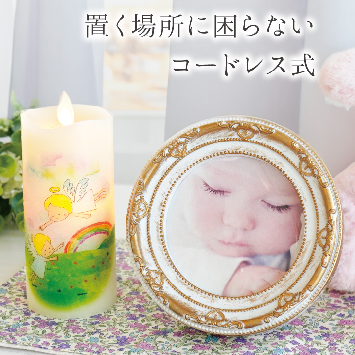 コードレスで置く場所も選ばないので、灯を使うのが不安な仏壇のそばやリビング、納骨堂など、幅広い場所でお使いいただけます。