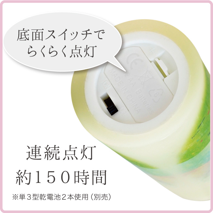 本物のロウを使ったリアルな質感と、自然な炎のゆらぎを再現したLEDローソク。