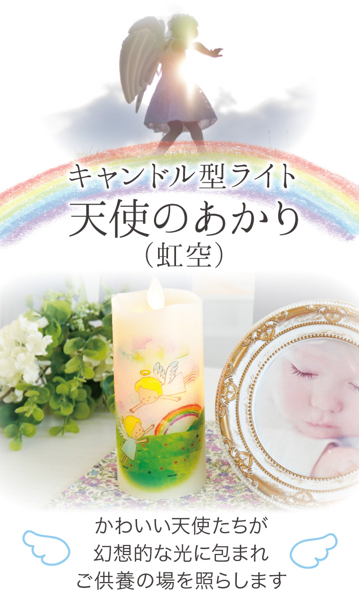 可愛らしい虹の橋と、天使ちゃんをモチーフにしたやさしいタッチのイラストが、大事な方のご供養にぴったりです。