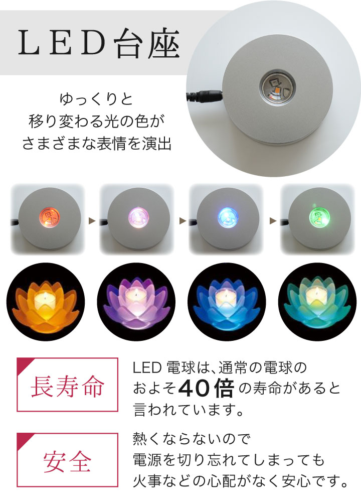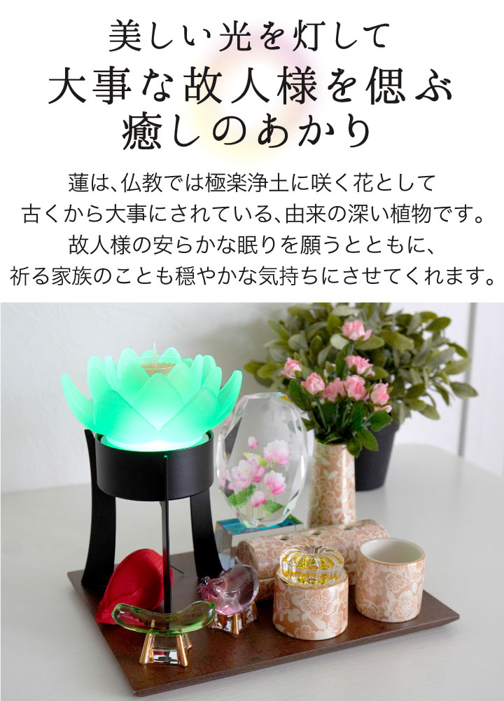 お悔みに寄り添う心温まる仏具をお探しの方に、とうろう清蓮華(せいれんげ)DXをご提案させていただきます。