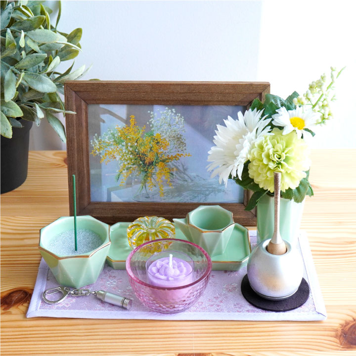 ・仏具セット「美濃焼仏具 ライムグリーン」