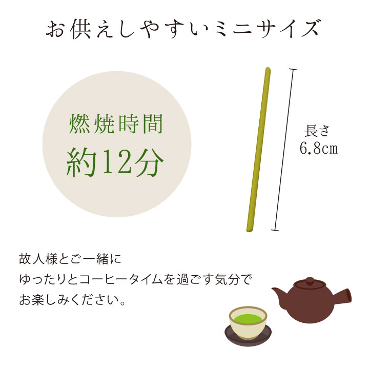 約12分で燃焼するミニ寸線香です。