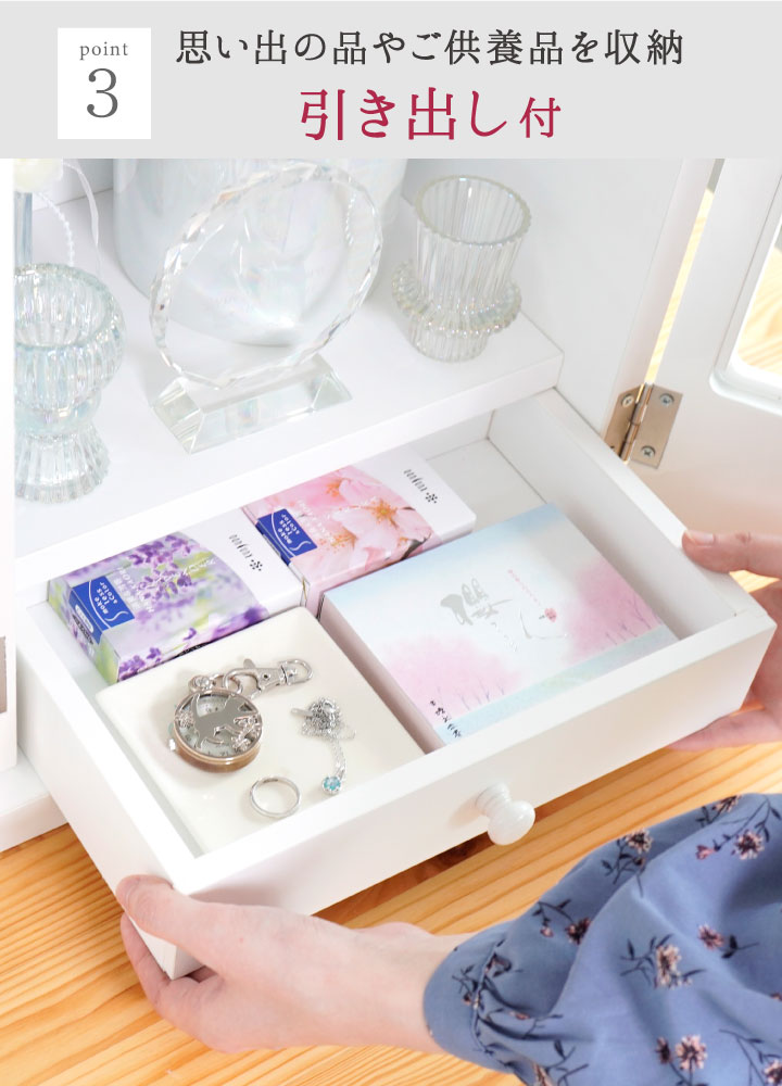 仏具や位牌など、思い思いにお供えして、大事な故人様のご供養の場所をお作りください。
