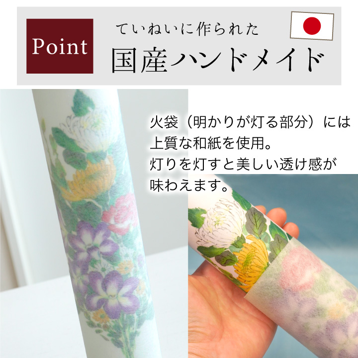 盆提灯は宗派による違いはありませんので、お好みの盆提灯をお選びいただけます。 |