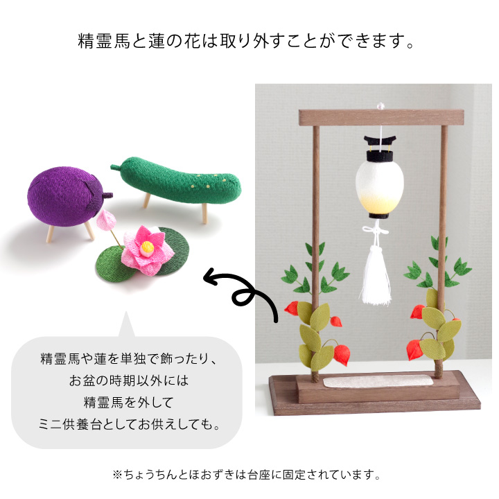 精霊馬と蓮の花は、台から取り外しができるようになっています。