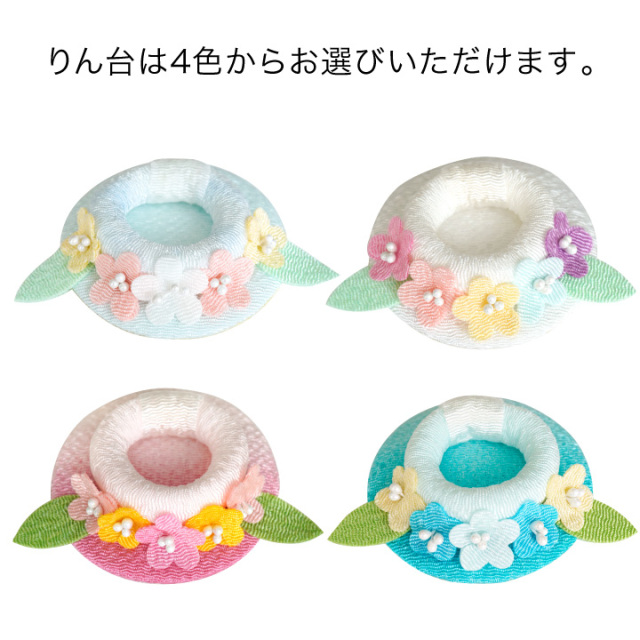 ちりめん細工でていねいにお作りした、お花のおりんセットが登場しました。