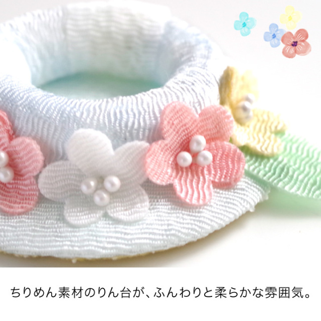 ふわりとかわいいお色味と、ちりめんのやわらかい雰囲気が愛らしさたっぷりです。