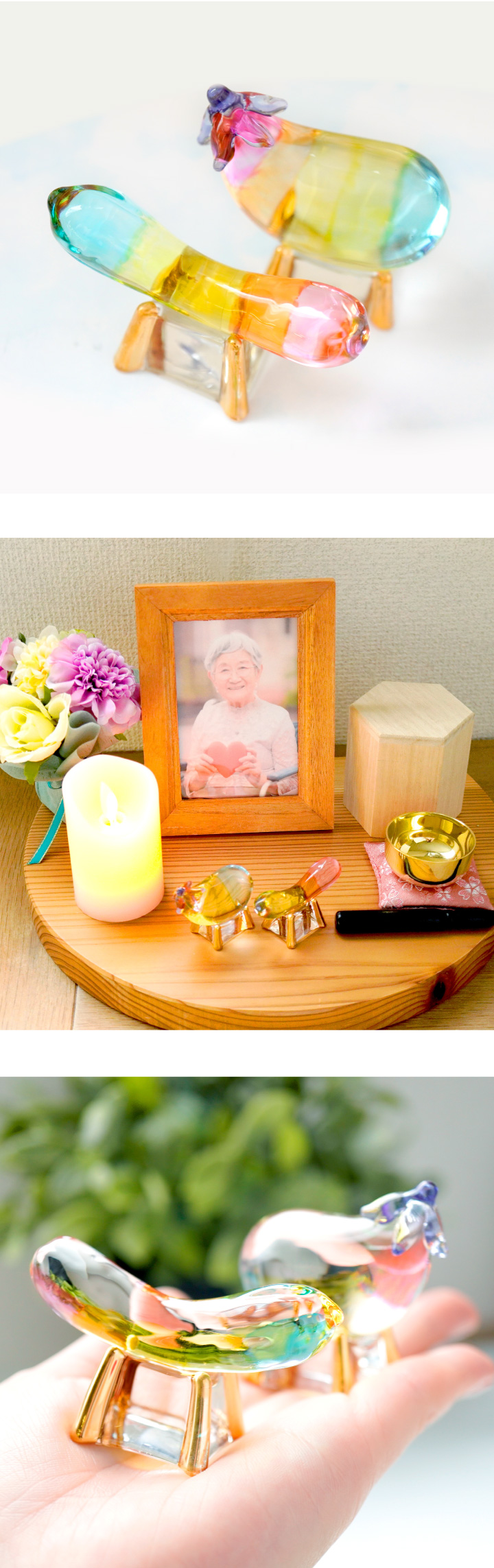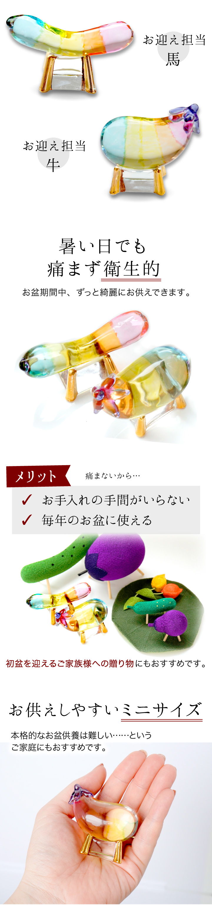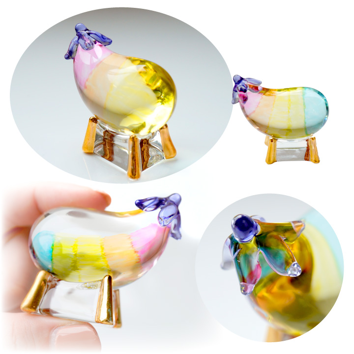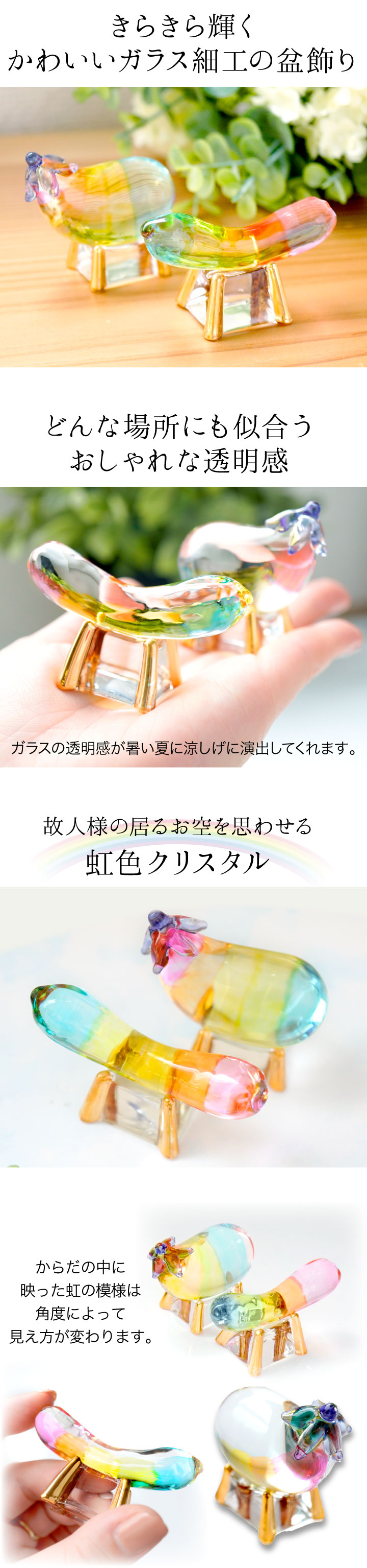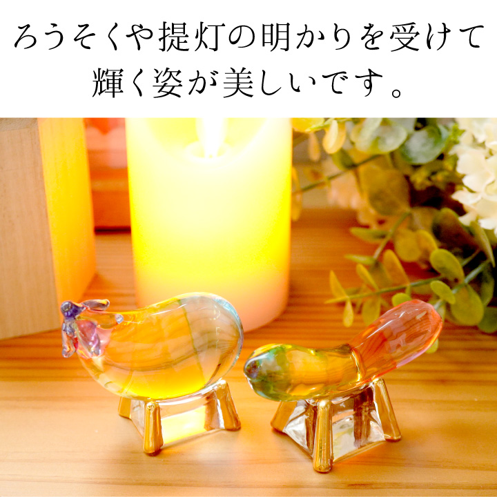 こちらのお品物は、そんな精霊馬を、キラキラかわいらしいガラス細工でお作りしました。