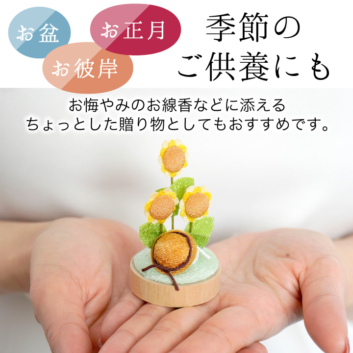 仏壇などのご供養の場にそっと飾れば、供養を通じてお空の故人様と季節ごとの思い出を共有できそうですね。