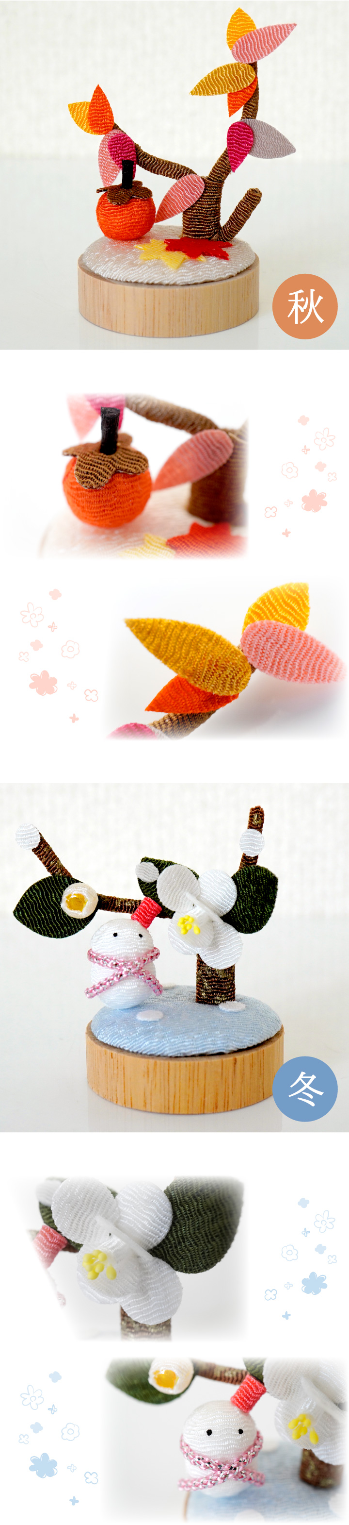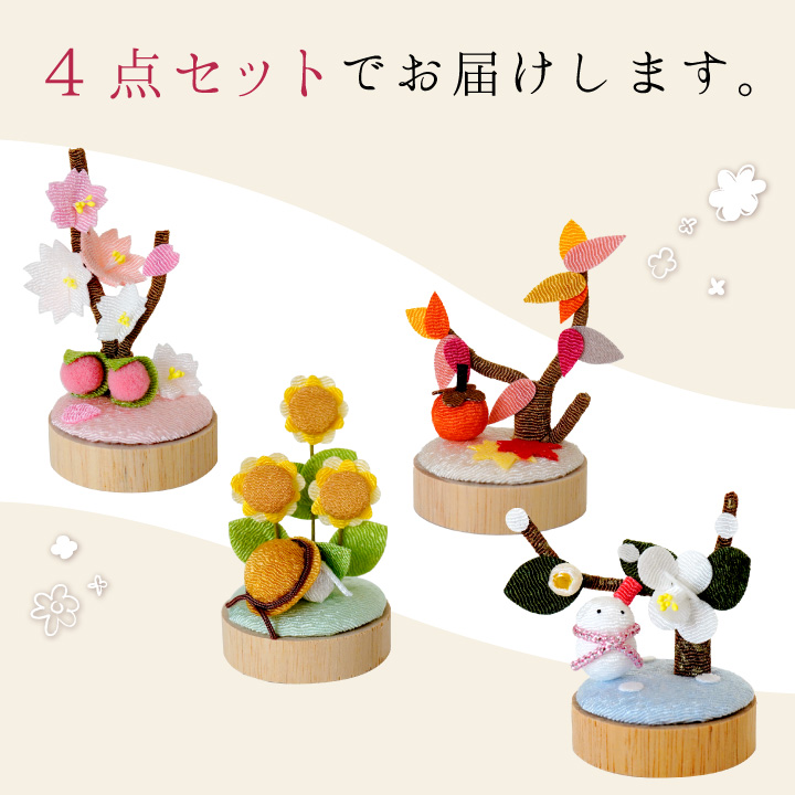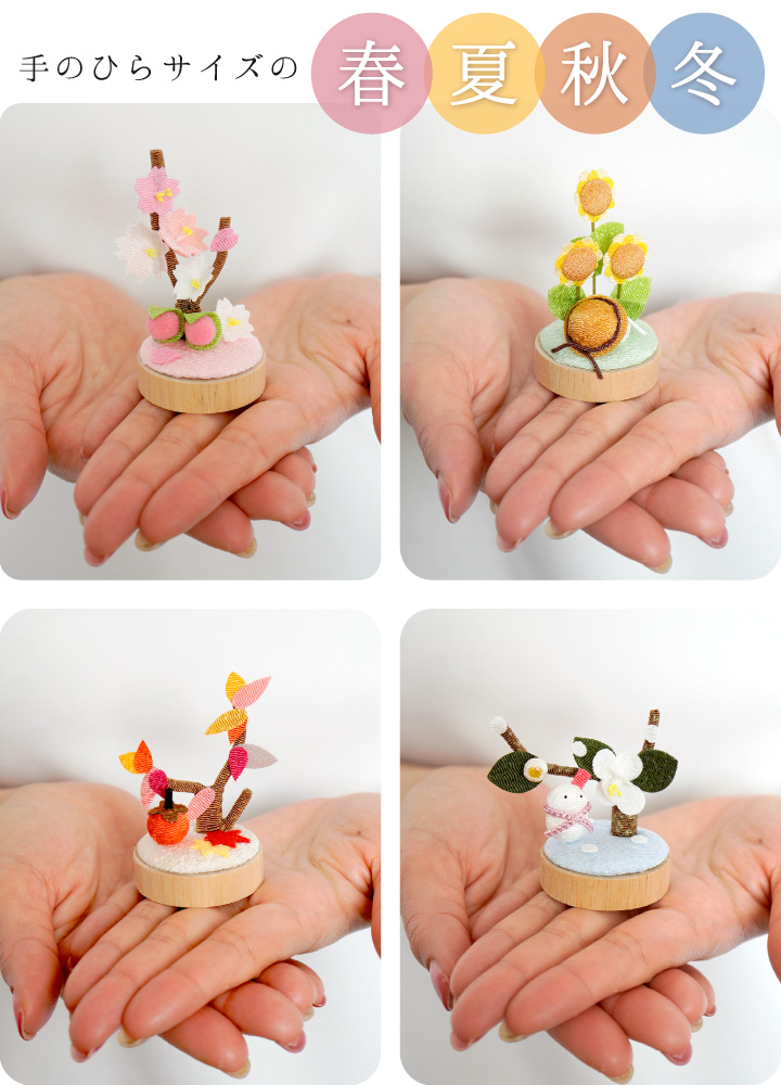 どこにでもお飾りいただけるよう、それぞれ手のひらにちょこんと乗るくらいの、小さな小さなコンパクトサイズでお作りしています。