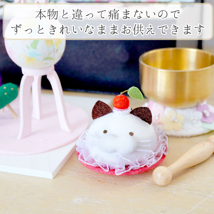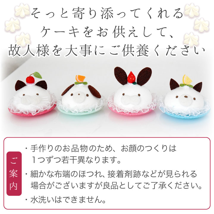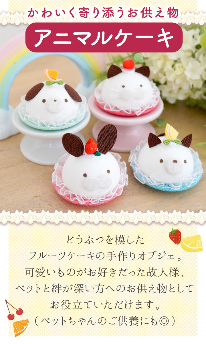どうぶつモチーフのプチケーキを模した、ユニークで愛らしいお供え物です。
