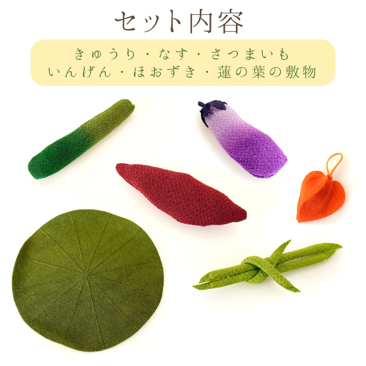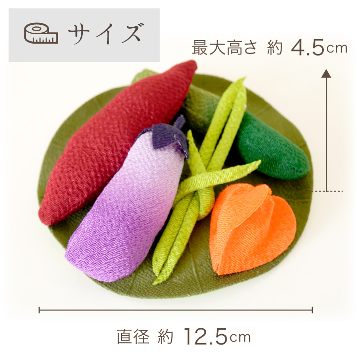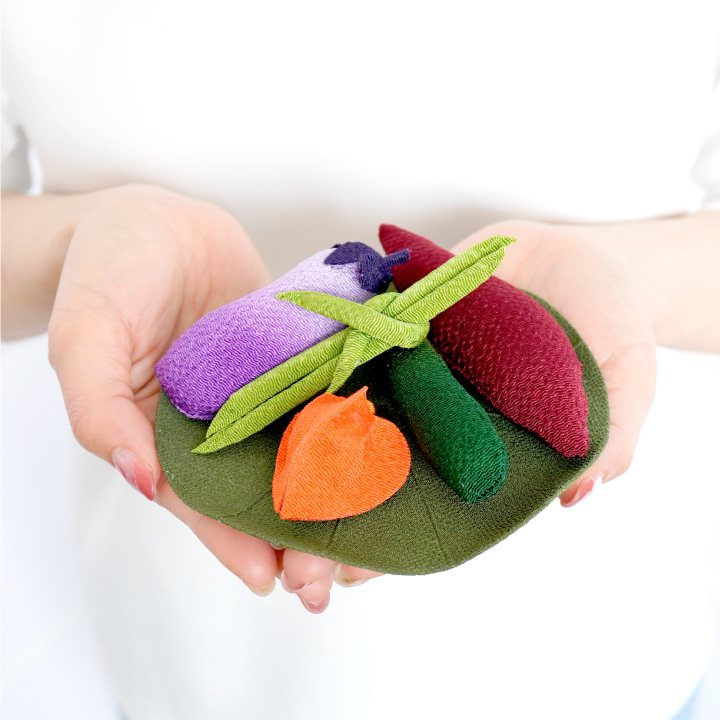 ちりめん細工でお作りした、かわいらしいお野菜のセットです。