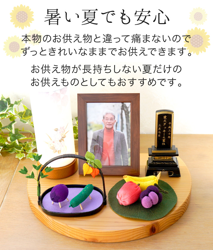 故人様の喜ぶ顔を思い浮かべながらお供えして、思い思いにご供養の場をお作りください。
