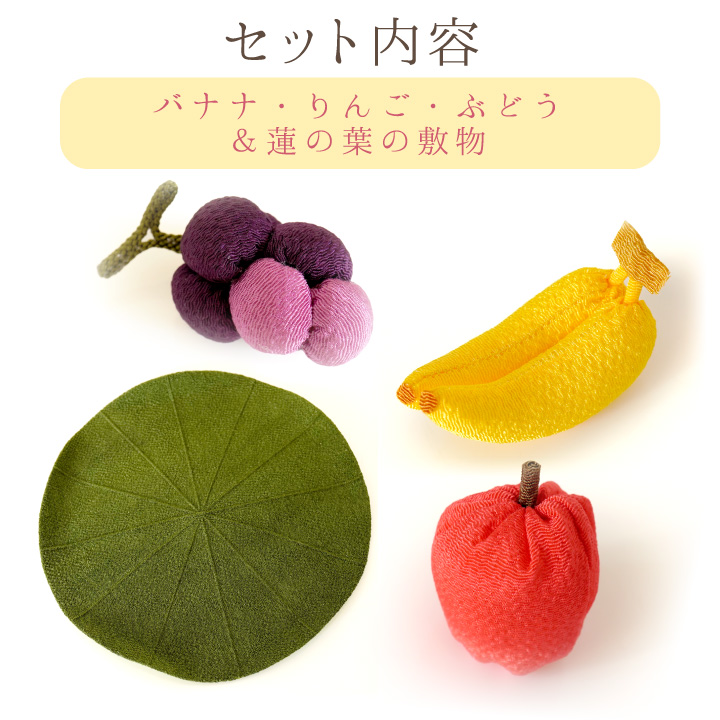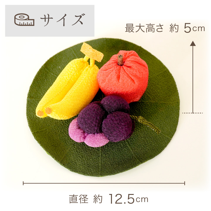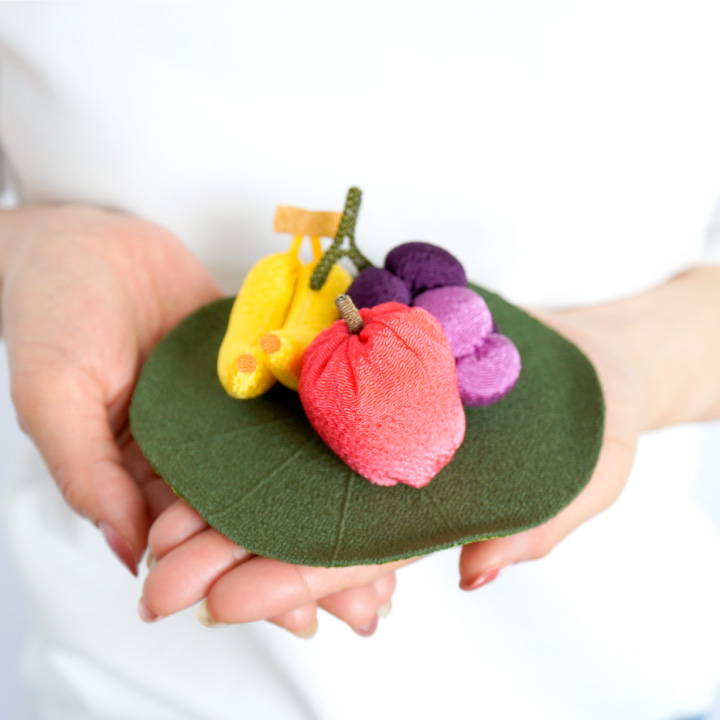 ちりめん細工でお作りした、かわいらしいフルーツのお飾りのセットです。