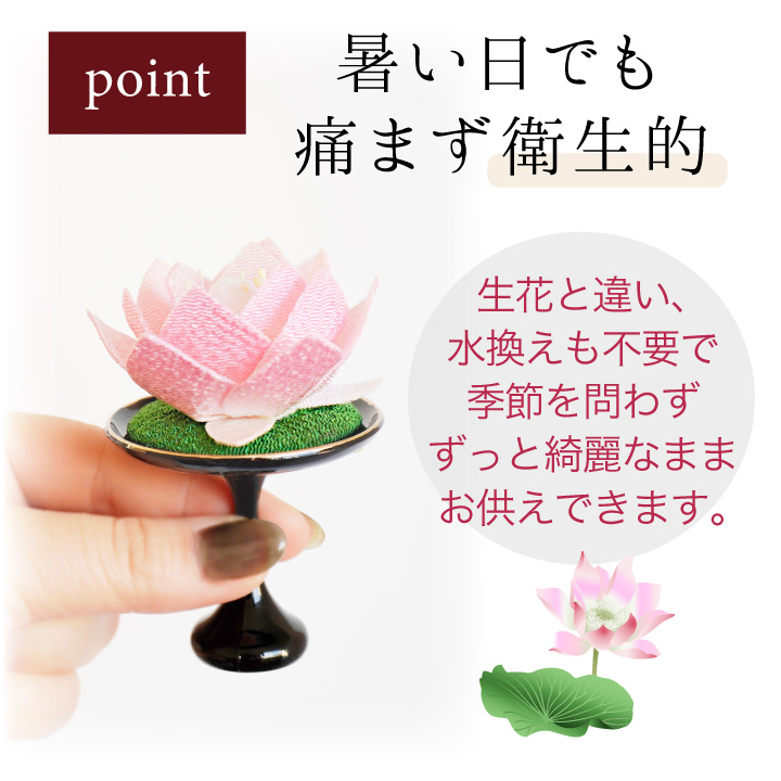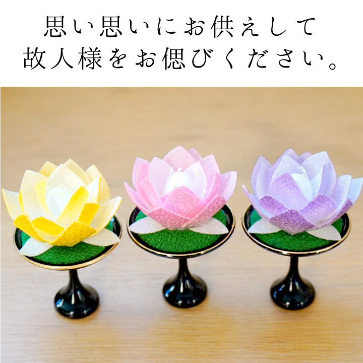 TOP お盆用品その他 花・お供え物造花 仏具 ちりめん 蓮華 たかつき お飾り オブジェ 置物 ミニ 小さい お盆飾り お供え物 国産 日本製 お盆 お彼岸 命日 一周忌 手元供養 かわいい おしゃれ 和風 和モダン コンパクト 水子供養 子供 57-37 価格: ¥2,640 (税込) [ポイント還元 26ポイント〜] 販売期間: 22: 2: 数量: 個 種類在庫購入むらさき在庫あり ピンク在庫あり 黄色在庫あり 種類在庫購入むらさき在庫あり ピンク在庫あり 黄色在庫あり 返品についての詳細はこちら アイテム名 ちりめん細工 小さな蓮の花飾り(台付き) 商品番号(お問い合わせコード):f00ry072 備考 全体のサイズ:高さ 9cm×奥行き 6cm×横幅 6cm 素材:レーヨンちりめん ※人の手でひとつずつ作っているため、色味や形の違い、ゆがみなどがある場合がございますが、すべて良品ですので安心してお供えください。 こちらもおすすめです 仏具 一覧へ > 花・お供え物 一覧へ > カテゴリ一覧 > 手元供養のディアファミリーTOPページ > ⇒掛け紙対応 専用ギフト商品はこちら⇒ラッピングサービスはこちら