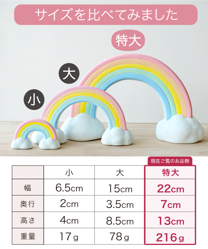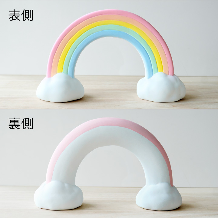 優しいカラーでお作りした、「虹」モチーフの陶器製のオブジェです。