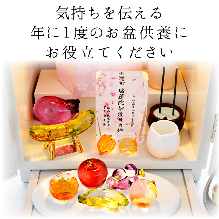 故人様の笑顔を思い浮かべながらお供えして、心が通うかけがえのないお盆のひとときをお過ごしください。