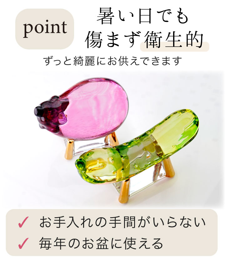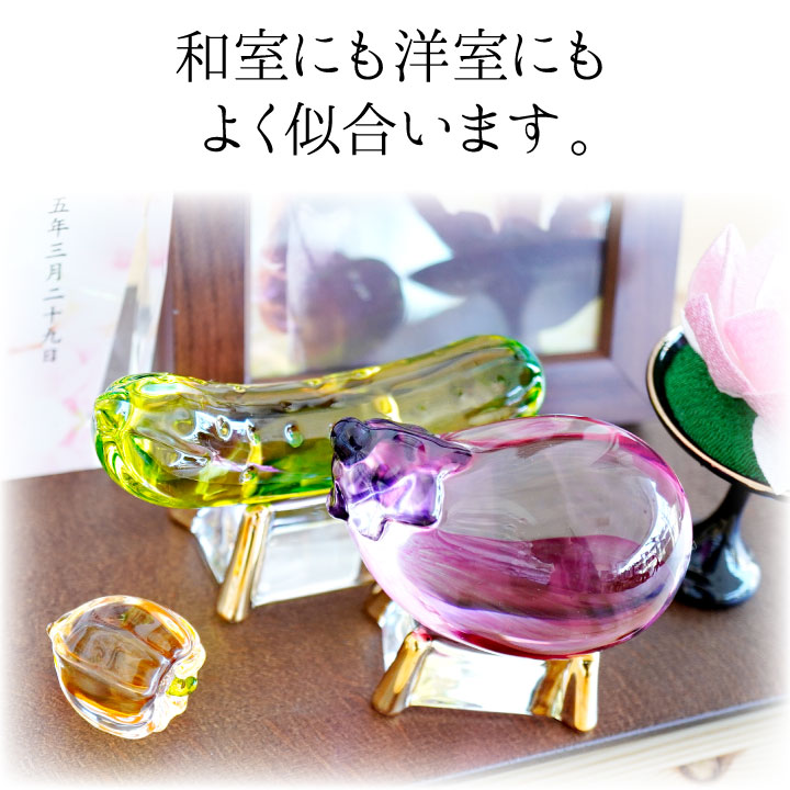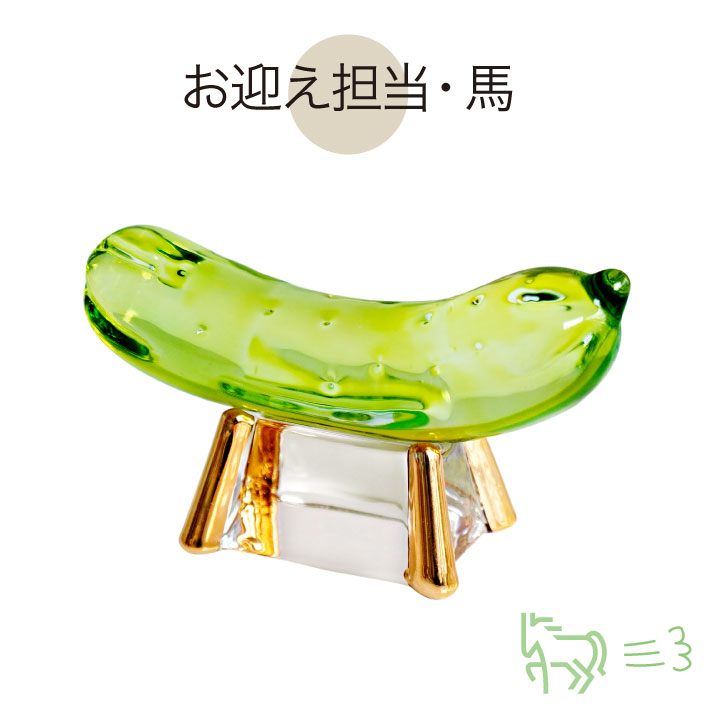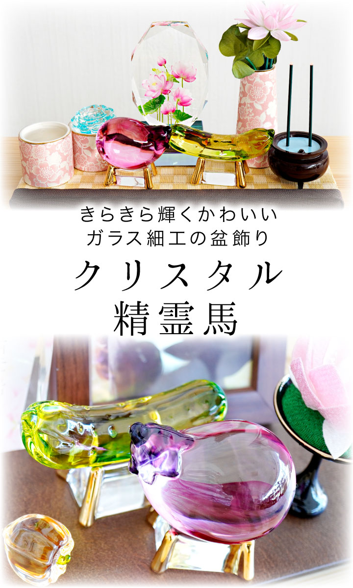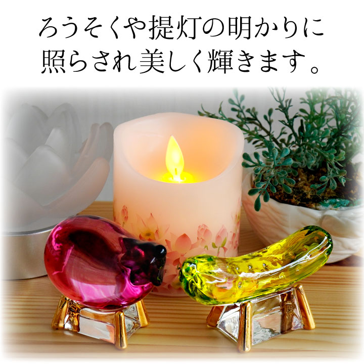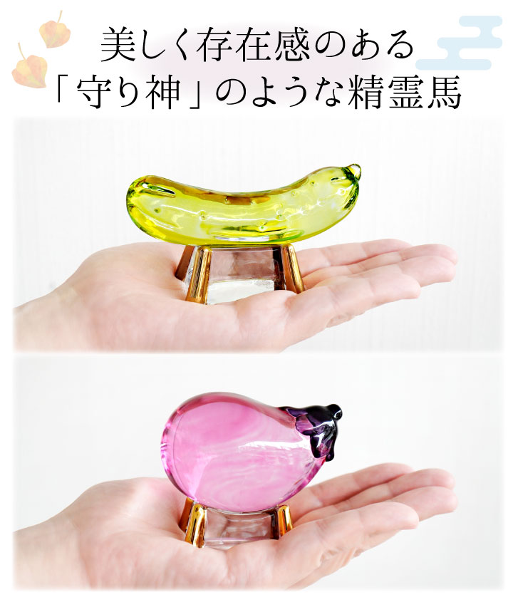 こちらのお品物は、そんな精霊馬を、キラキラかわいらしいガラス細工でお作りしました。