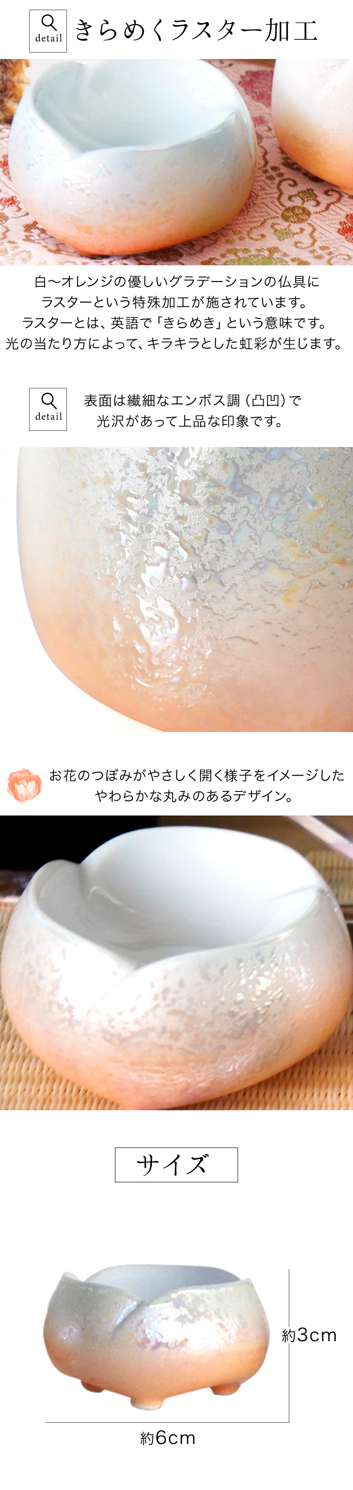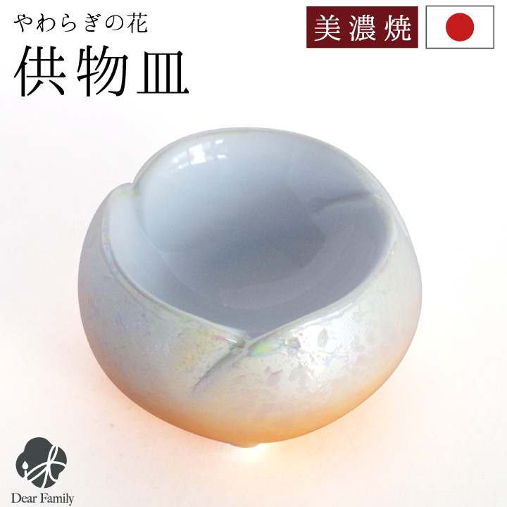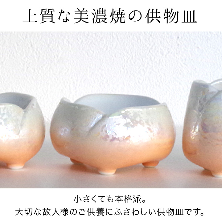 仏具 やわらぎの花 仏器 ラスターオレンジ 国産 日本製 美濃焼 単品供物皿 ごはん お供え ご飯皿 食事用 仏前 仏壇に ミニ 陶器 手元供養 法要 お悔やみ 可愛い かわいい 水子供養 オーロラ