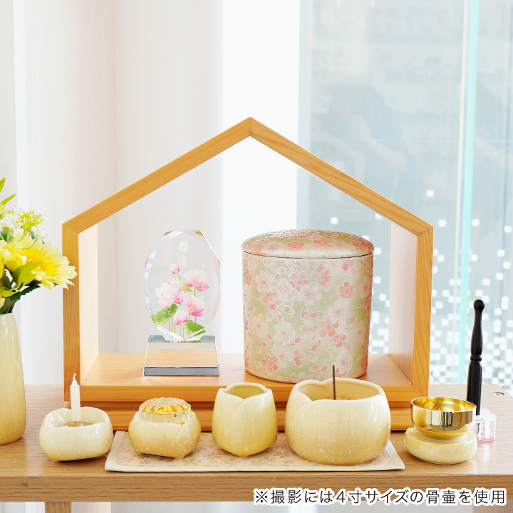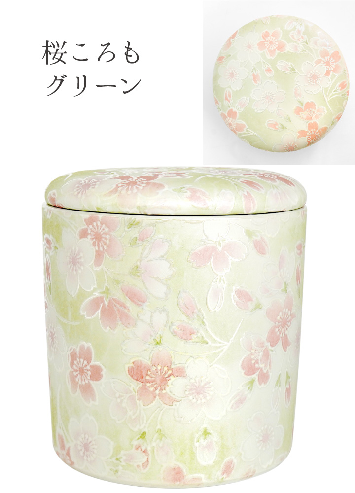 ・骨壷「セレクトシリーズ 桜ころもグリーン」※4寸サイズを使用