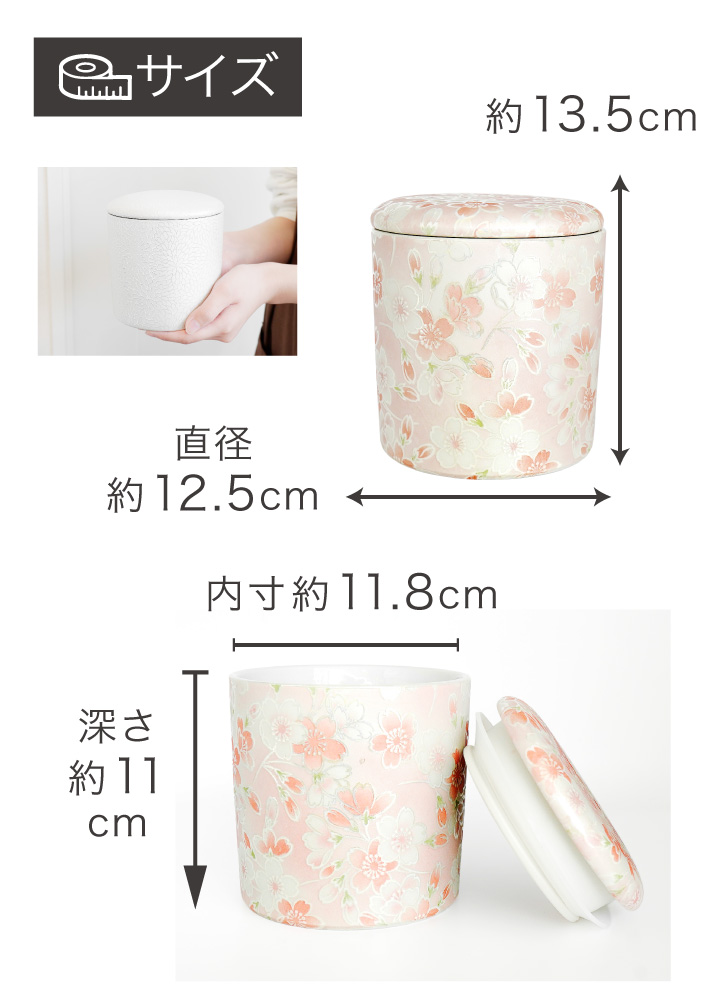・全体サイズ:直径 約12.5cm×高さ 約13.5cm ・内部サイズ(内寸):直径 約11.8cm×深さ 約11cm ※陶器ですので若干の違いはございますが、「4寸」という規格で製作しております。 |