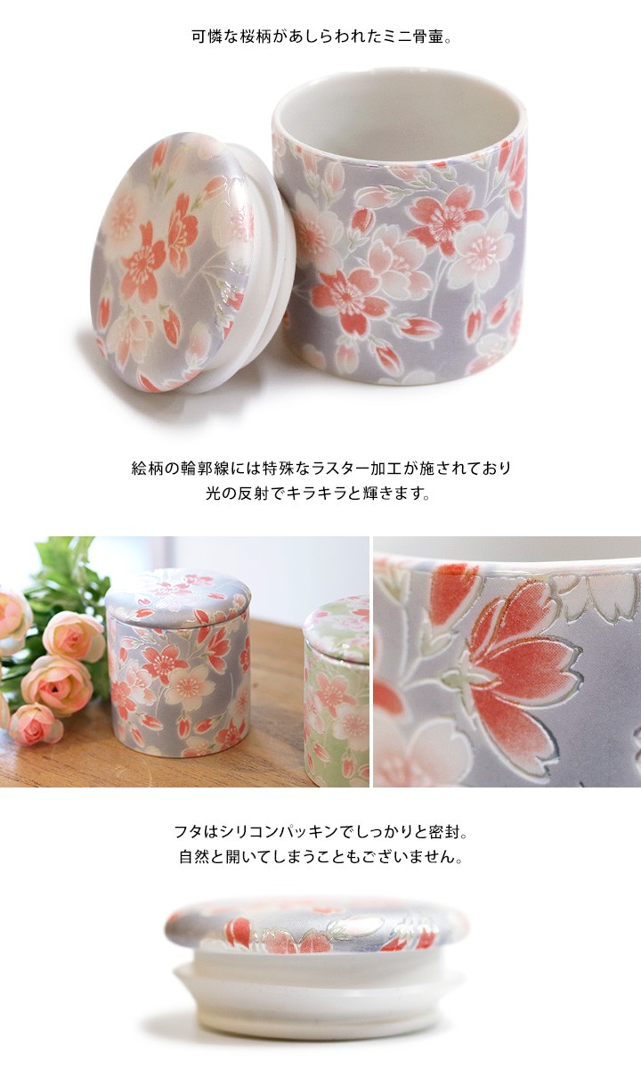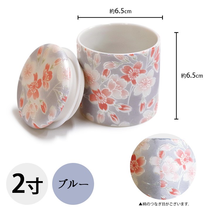 TOP 骨壷色から探す赤・ピンク系 骨壷素材から探す陶器製 骨壷色から探す青系 ミニ骨壷 桜ころも 2寸 ブルー 国産 さくら 桜骨壷 ミニ骨壷 分骨 遺骨 骨 仏具 手元供養 供養 四十九日 法要 柄 ラスター キラキラ 小さい ミニ 骨入れ 火葬 陶器 シリコン パッキン 花 はな 春 ピンク 青 パール ブルー 桜特集 ケース 喉仏 価格: ¥4,400 (税込) [ポイント還元 44ポイント〜] 販売期間: 22: 5: 数量: 個 在庫: 在庫あり 在庫 在庫あり 返品についての詳細はこちら 色 ブルー サイズ 直径約6.5cm×(2寸)蓋の内寸直径:約4cm重量:151g 素材 陶器、シリコン 備考 ■日本製(岐阜県)※骨壷の柄には特殊な加工を施しており、一部つなぎ目がございます。※職人がひとつずつ手作業で製作しているため、大きさにバラつきがございます。