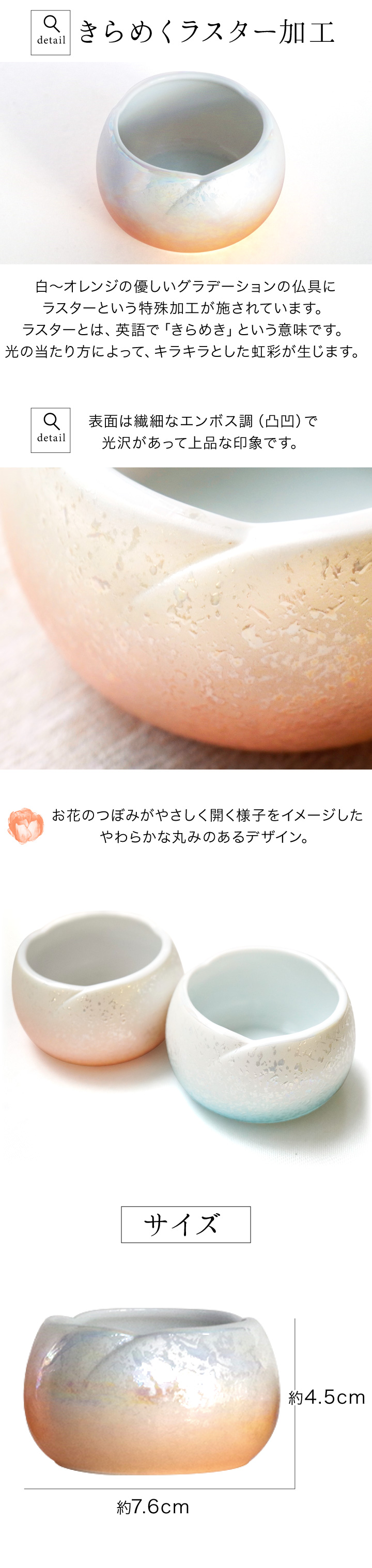国産仏具「やわらぎの花」 香炉 単品 ラスターオレンジ【小サイズ】