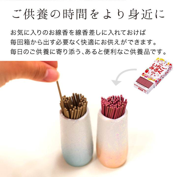 お線香を仏壇や仏具と一緒に立てておいておけるので、毎日のご供養に便利です。