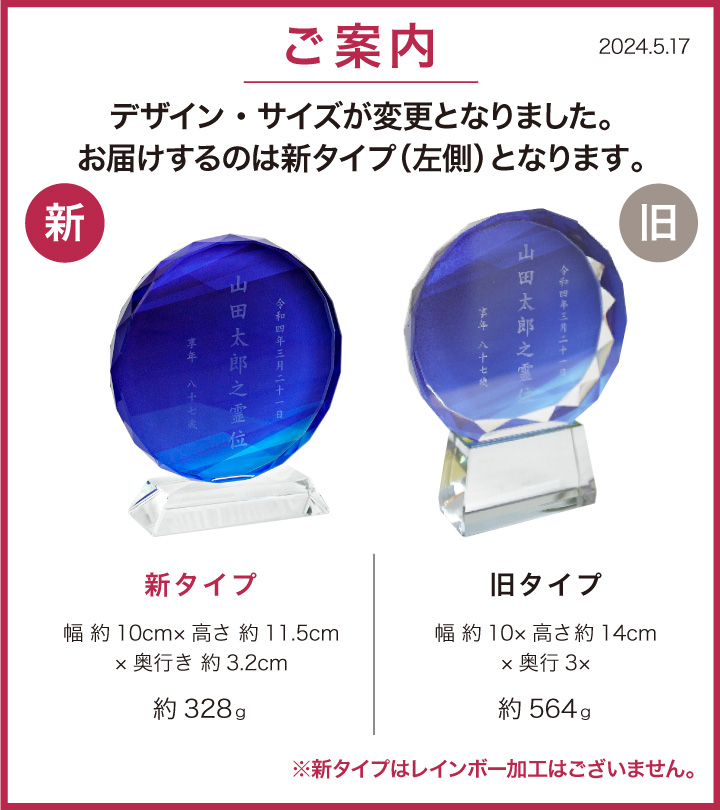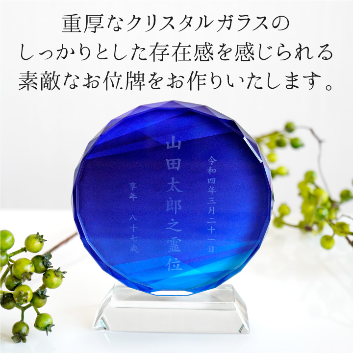 ずっしりと重厚感のある、クリスタルガラス製の位牌です。